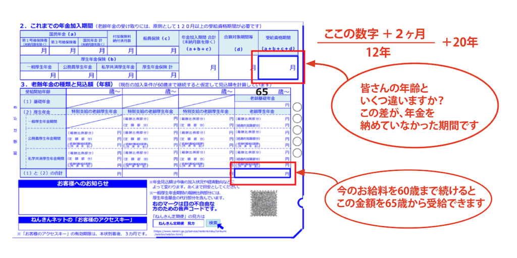 65歳からもらえる年金額は、ここに書いてあるのですよ。