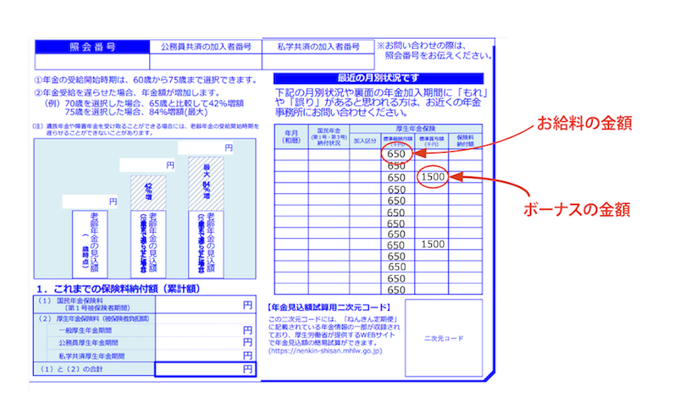 ここには今まで加入していた期間、こっちには、今のお給料が書いてあるのです。とてもすごい個人情報でしょう(笑)