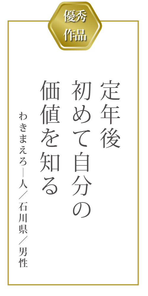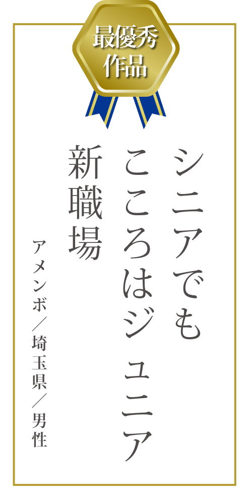 今回の「働くシニアのユニーク川柳大募集」において、最優秀作品に選ばれたのは、ペンネーム「アメンボ」さんによる一句、
