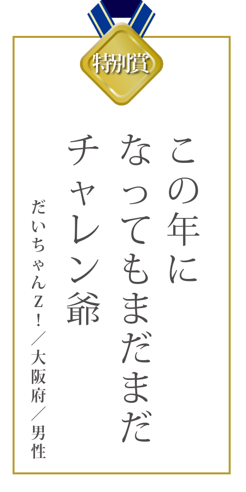 「チャレンジは若者のもの」という固定観念を軽やかに打ち破り、シニア世代が新たな可能性に向かって踏み出す象徴として、この句を特別賞に選出いたしました。