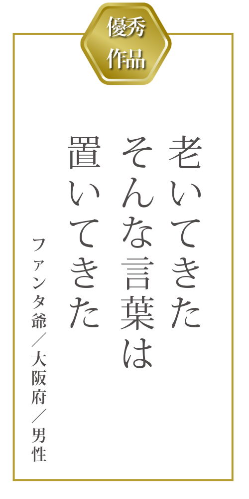 この作品は、「年齢ではなく、心の持ちようこそが前進する力になる」という当協会の理念にも通じるものであり、まさに本企画の趣旨を体現する一句として最優秀賞にふさわしいと評価されました。