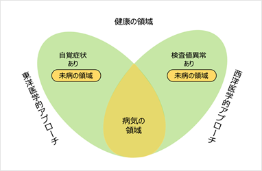 「未病」状態とは、「健康」と「病気」の間のことをいいます。